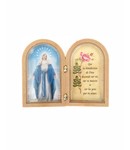 Small double frame made of quality wood with a colorful image of the Miraculous Virgin Mary and a french prayer.
