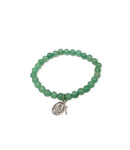 Le bracelet en aventurine sur élastique, orné d'une croix et d'une médaille de la Miraculeuse, est un bijou qui allie la beauté naturelle de la pierre semi-précieuse à la spiritualité des symboles chrétiens.