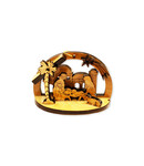 Cette petite crèche est faite de bois d’olivier en Terre Sainte et représente la Nativité avec la ville de Bethléhem en arrière-plan.