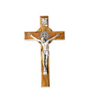 Au centre du crucifix, la médaille de Saint Benoît est intégrée, portant les inscriptions latines de prière et de protection contre les forces du mal. Vénérée depuis des siècles, cette médaille est un signe fort de foi et de bénédiction.