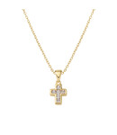 Ce pendentif délicat en forme de petite croix est réalisé en argent sterling plaqué or, pour une finition lumineuse et élégante. Orné de zircones cubiques étincelantes, il offre un éclat subtil et raffiné.